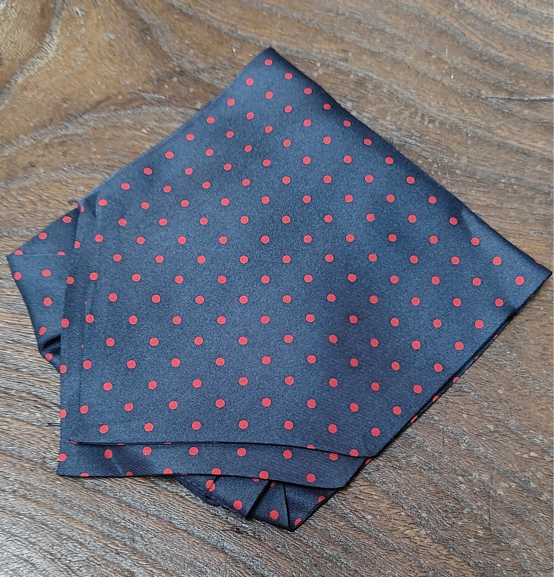 Question(s) answered about P.L. Sells Silk Cravat Navy Spot