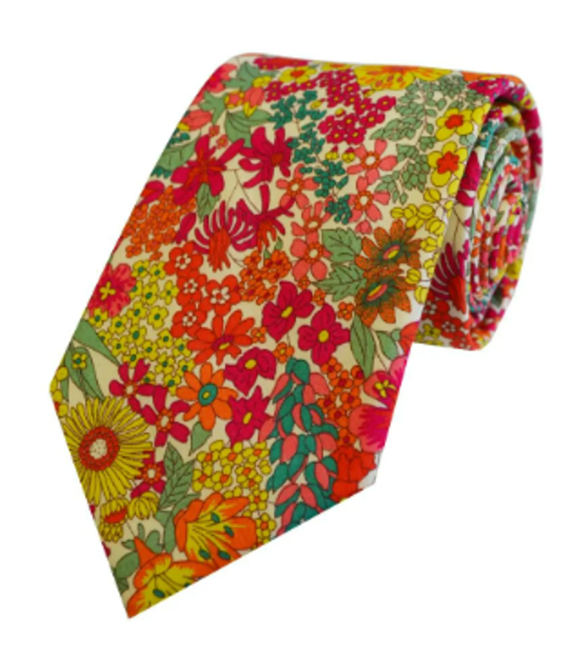 Crafted from iconic Liberty print cotton, our ties & pocket squares bring colour, character, and unmistakable British design to any outfit. Each piece is cut from Liberty’s signature fine cotton — celebrated for its softness, detail, and fluid drape.