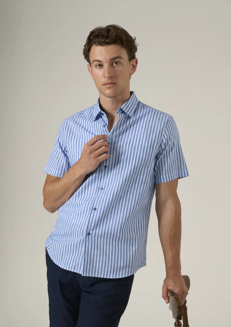 Taylor Hunt Linen Blend Half Sleeve Shirt Blue Stripe THLB001