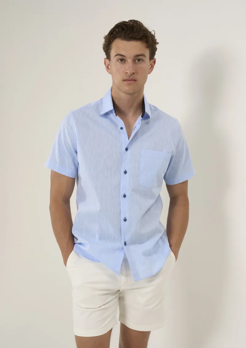 Taylor Hunt Linen Blend Half Sleeve Shirt Blue THLB004