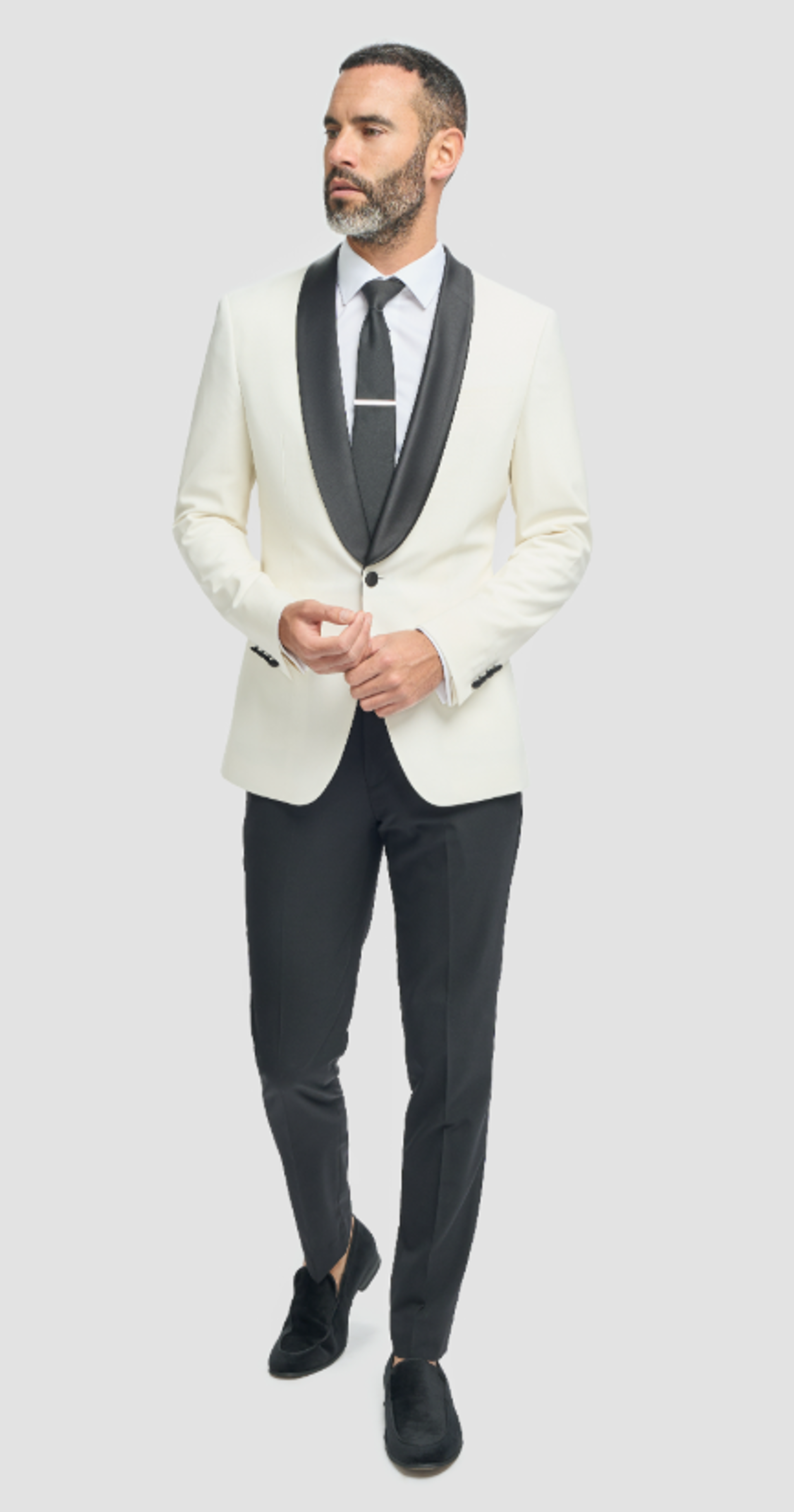 A timeless statement in monochrome elegance. This white dinner jacket features a smooth satin shawl lapel, tailored silhouette, and crisp contrast against black formal trousers. Designed for black-tie occasions, it balances classic refinement with modern poise—ideal for weddings, galas, or any evening that calls for distinction.