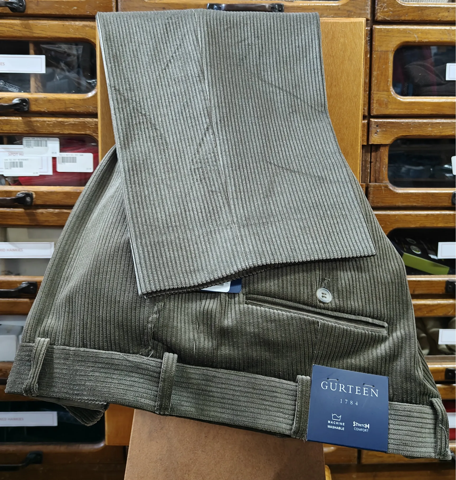 Question(s) answered about Gurteen Cologne Cord Brown 1541/006