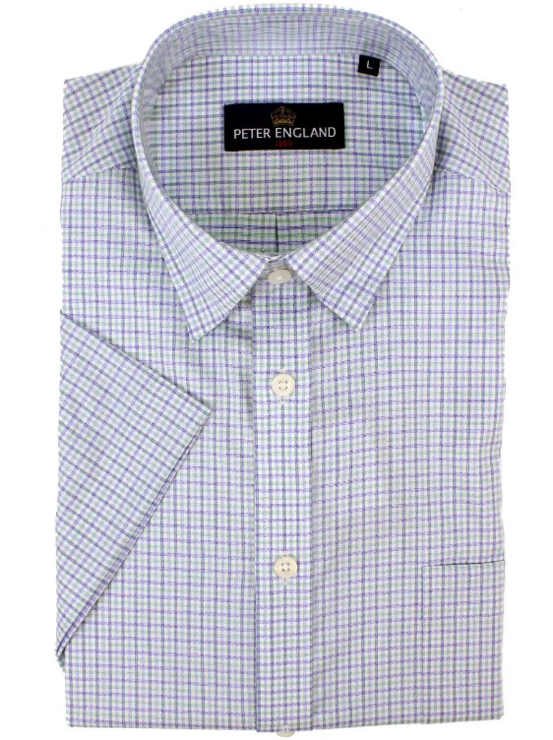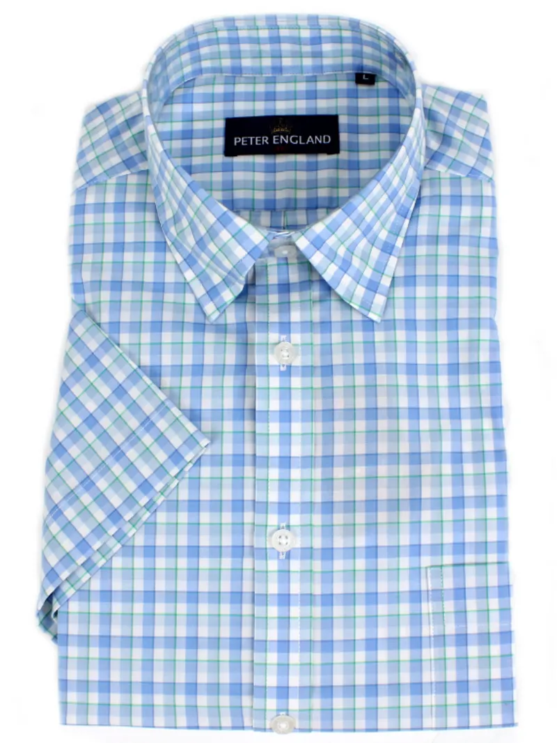 Peter England Check Shirt Blue Jade PE1627H-391