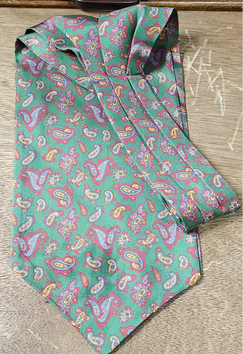 P.L Sells Silk Cravat Paisley Green C100